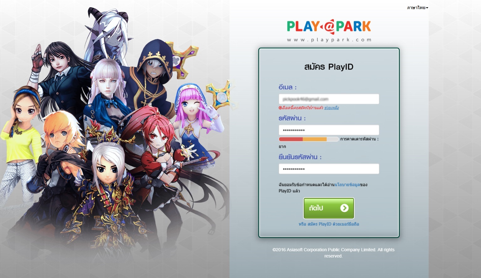 ขั้นสุดท้าย คุณสมัครเป็นสมาชิก PlayPark เรียบร้อย คุณสามารถนำ PlayID ดังกล่าว ไป Login เพื่อเล่นเกมหรือเติมเงินได้ทันที