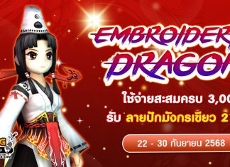 Embroidery Dragon September ใช้จ่ายสะสมครบ 3,000 บาท รับ “ลายปักมังกรเขียว 21 วัน”